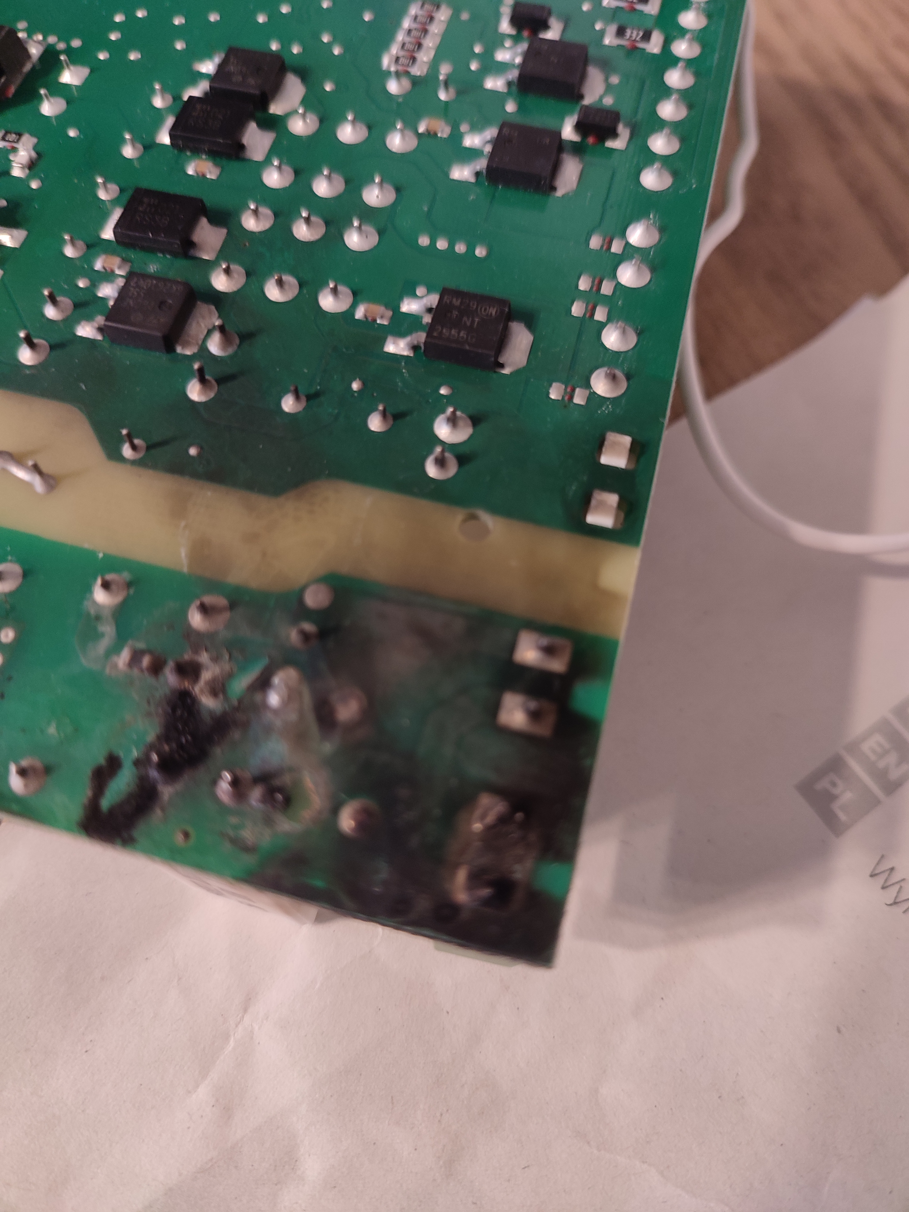 J’ai eu exactement le même problème avec un boîtier parfaitement étanche… la carte a brûlé au même endroit que vous au bout de 3 ans d’utilisation…
