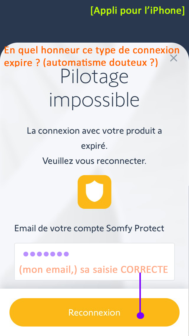 (Au fil du temps qui passe, et il y a un bon moment maintenant que je commente et que j'alerte Somfy pour/de ces erreurs, donc,...) un peu marre quand même que les fonctionnalités NE tiennent PAS les promesses !