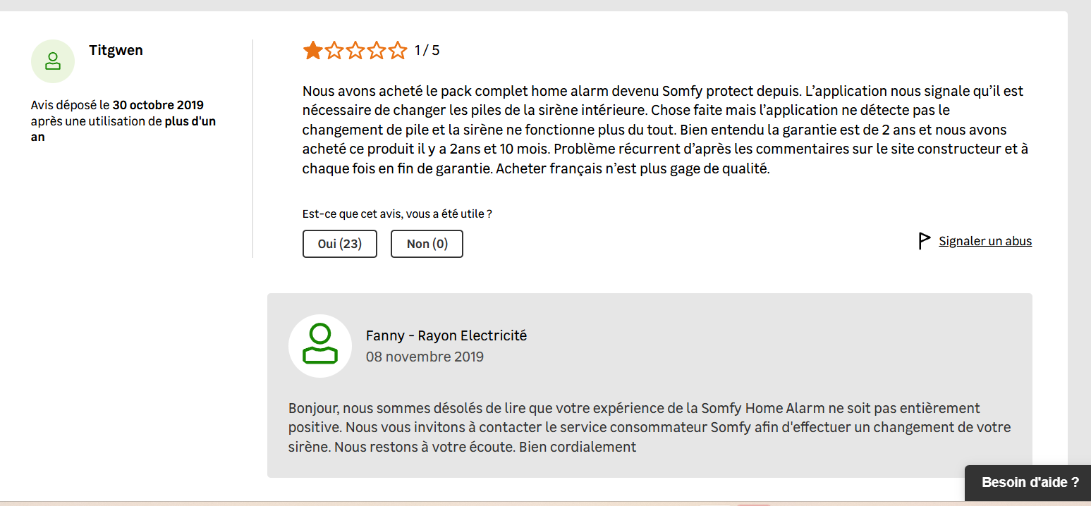 Peut être qu'un courrier à la DGCCRF fera bouger Somfy...