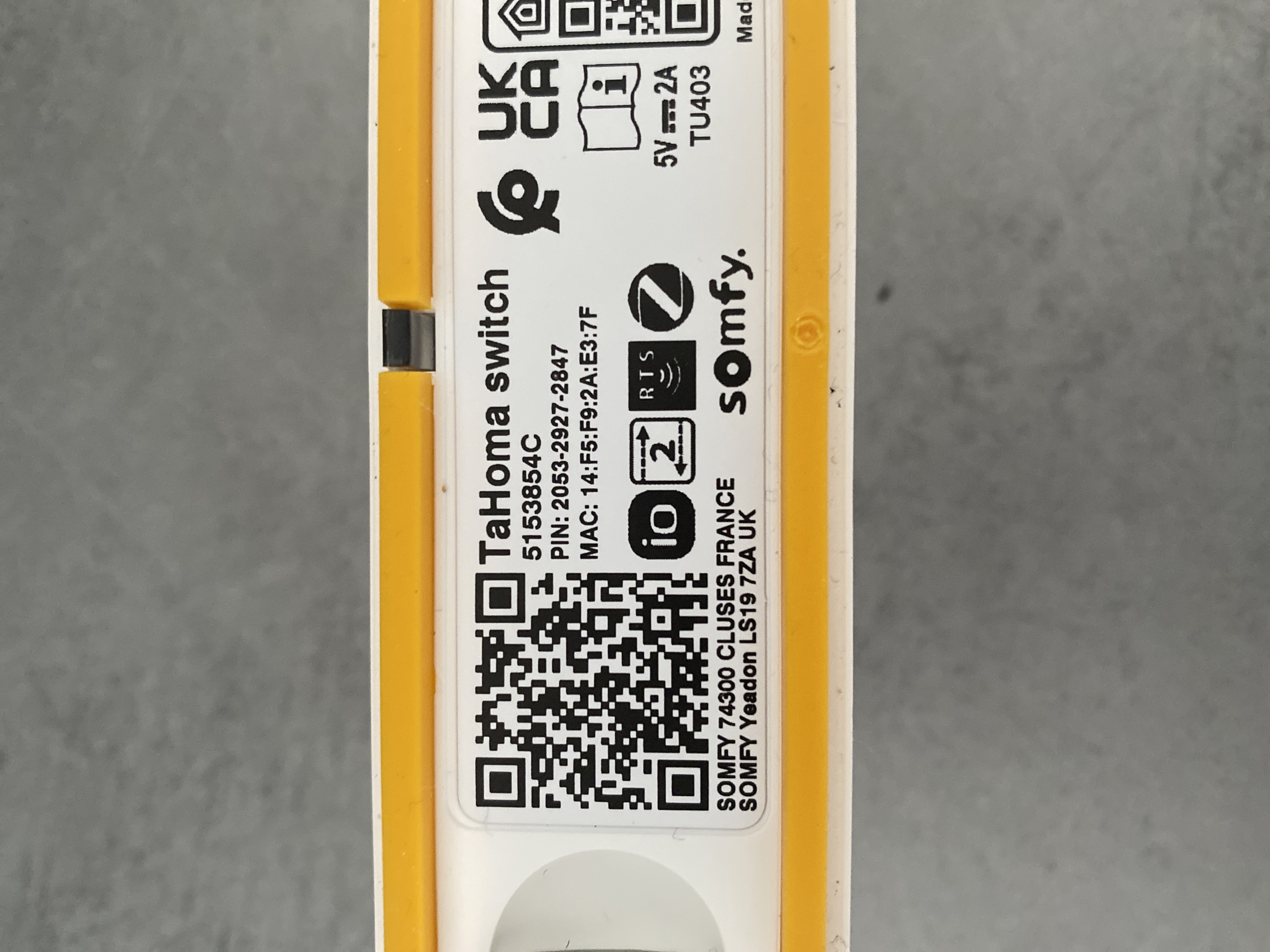Le code pin de ma box TAHOMA SWTICH est 2031 3670 9211.
