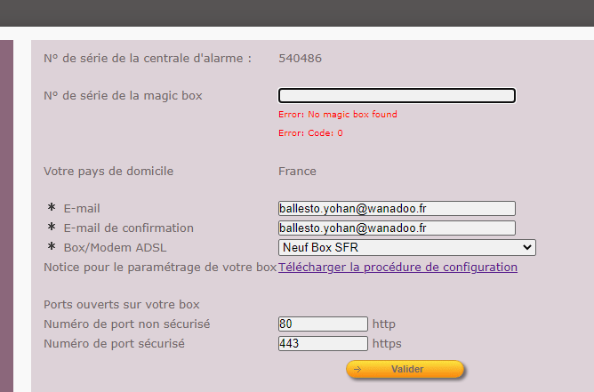 Lorsque je veux accéder à la centrale en wifi, on me réclame un N° MAGIC BOX????