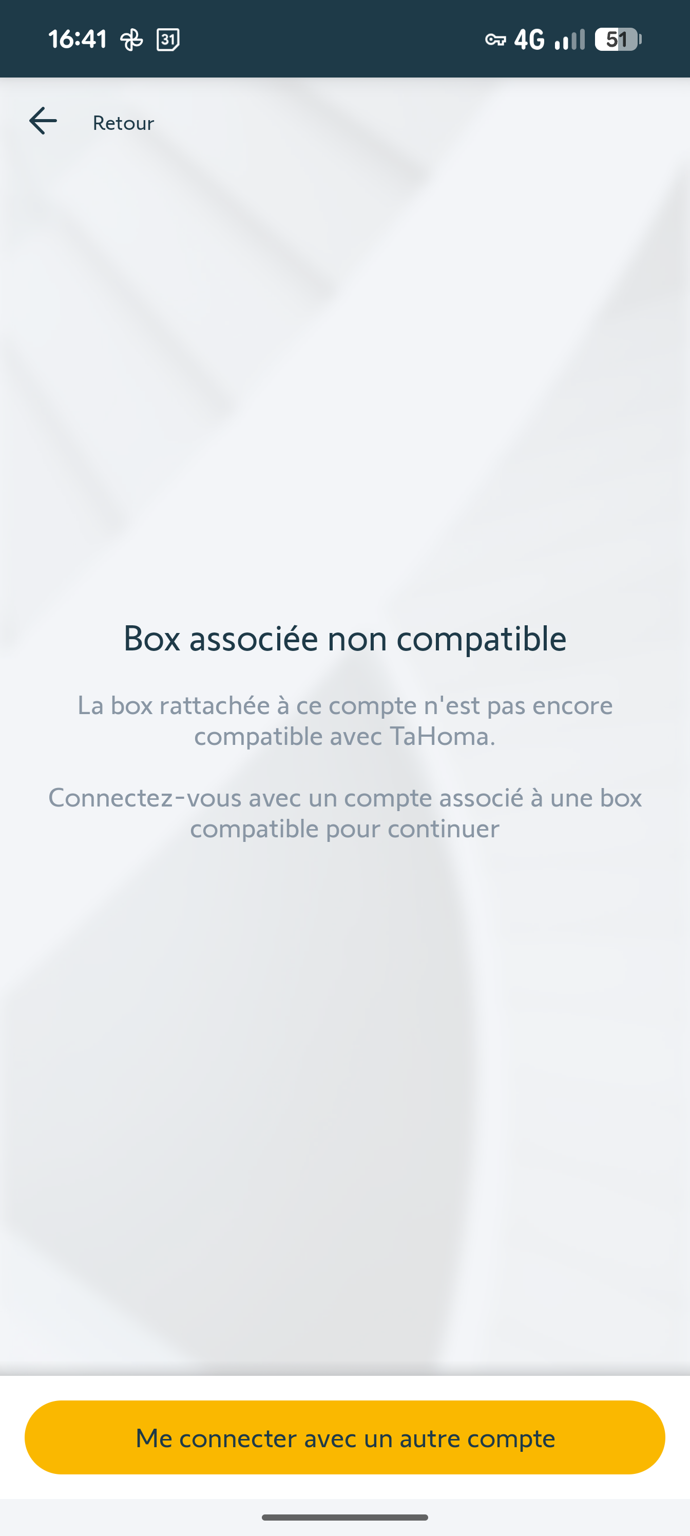 Mon acheteur a pu connecter la Box (Led verte), par contre il a maintenant le message "Box associée non compatible" alors que je vois que certains utilisateurs ont réussi a connecter ce modèle de Connexoon à l'application Tahoma.