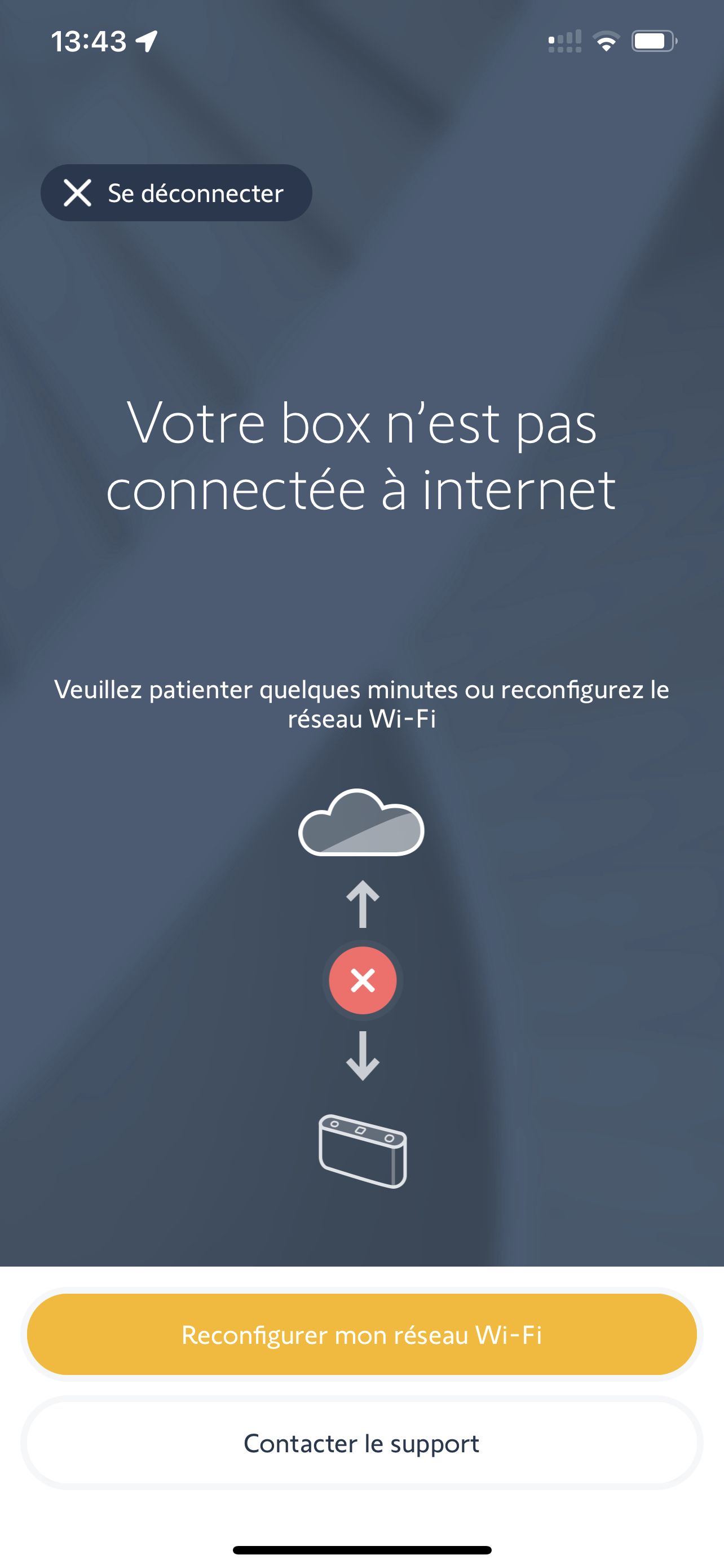 toutefois si il est déconnecter de notre serveur je ne pourrai pas faire grand chose et je vous invite a reparamétrer le réseau wifi.