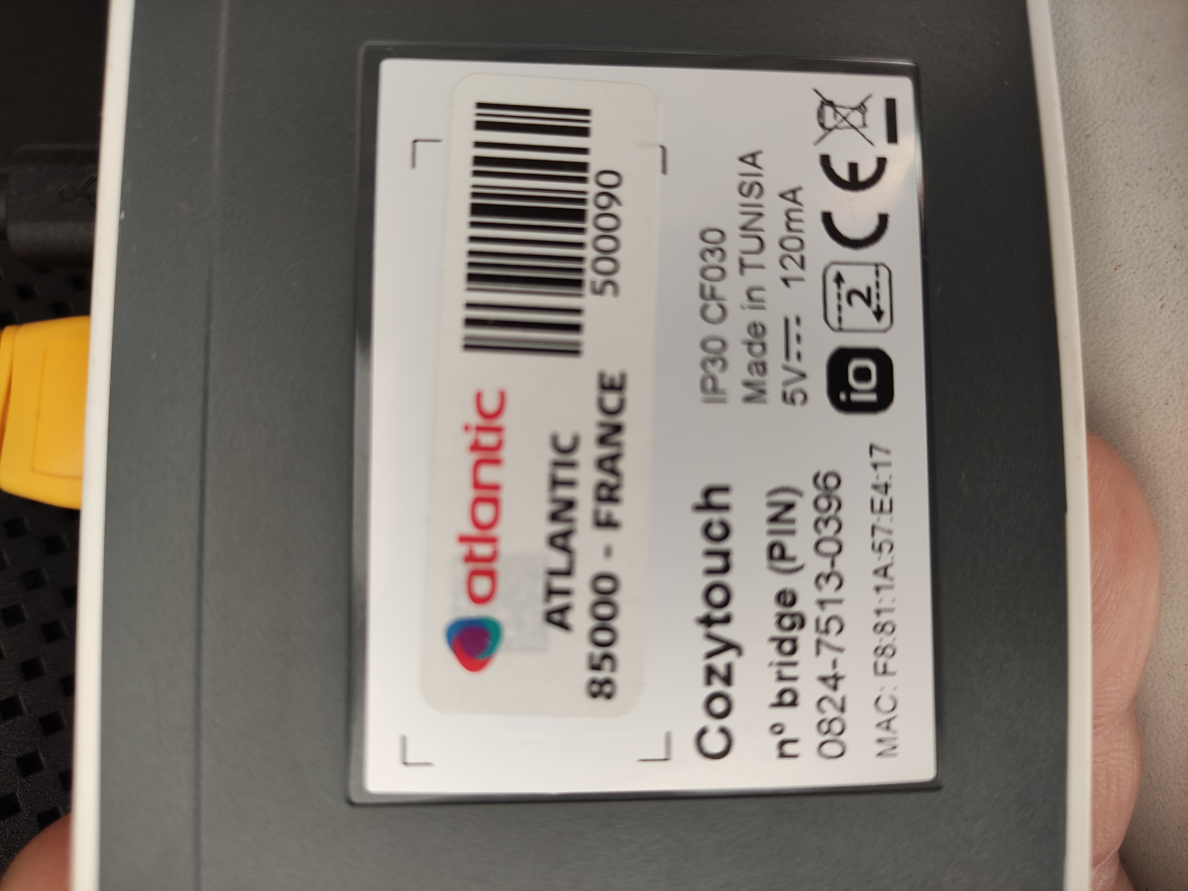 Je vous joins une photo de mon cozytouch et une photo de ma tahoma