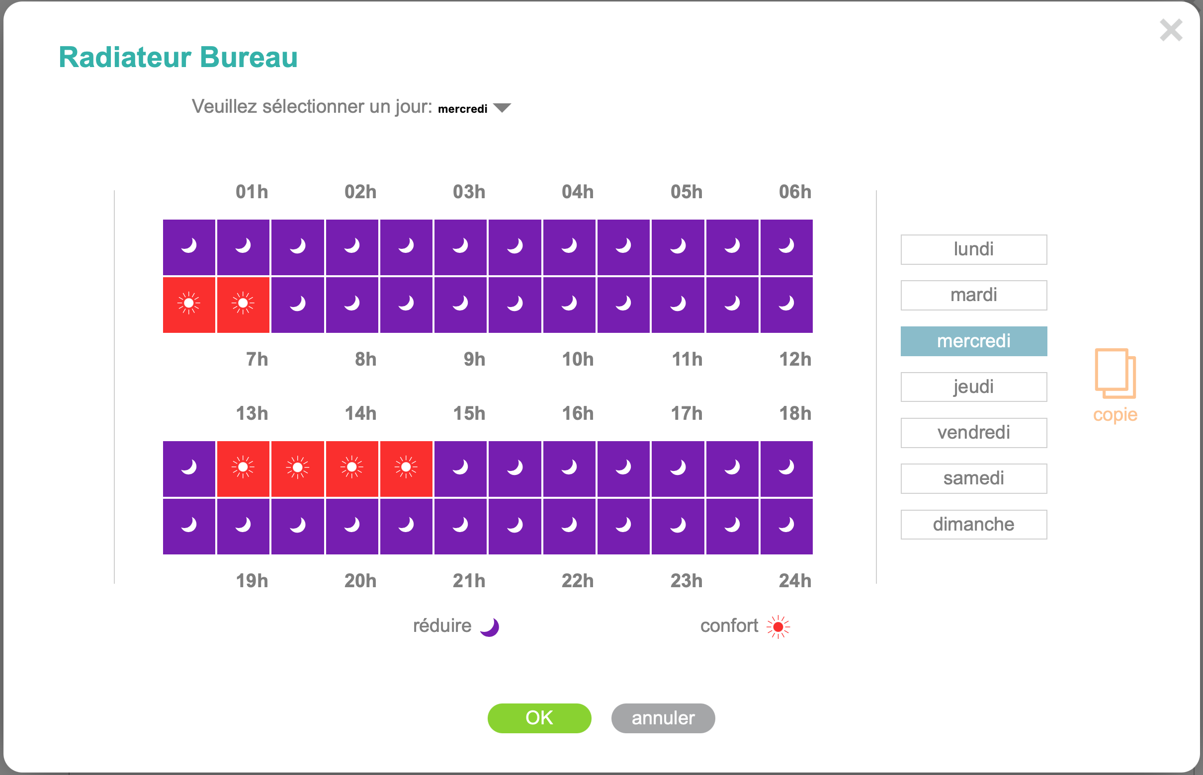 Ce jour : mercredi 11h, le mode "réduire" est programmé.