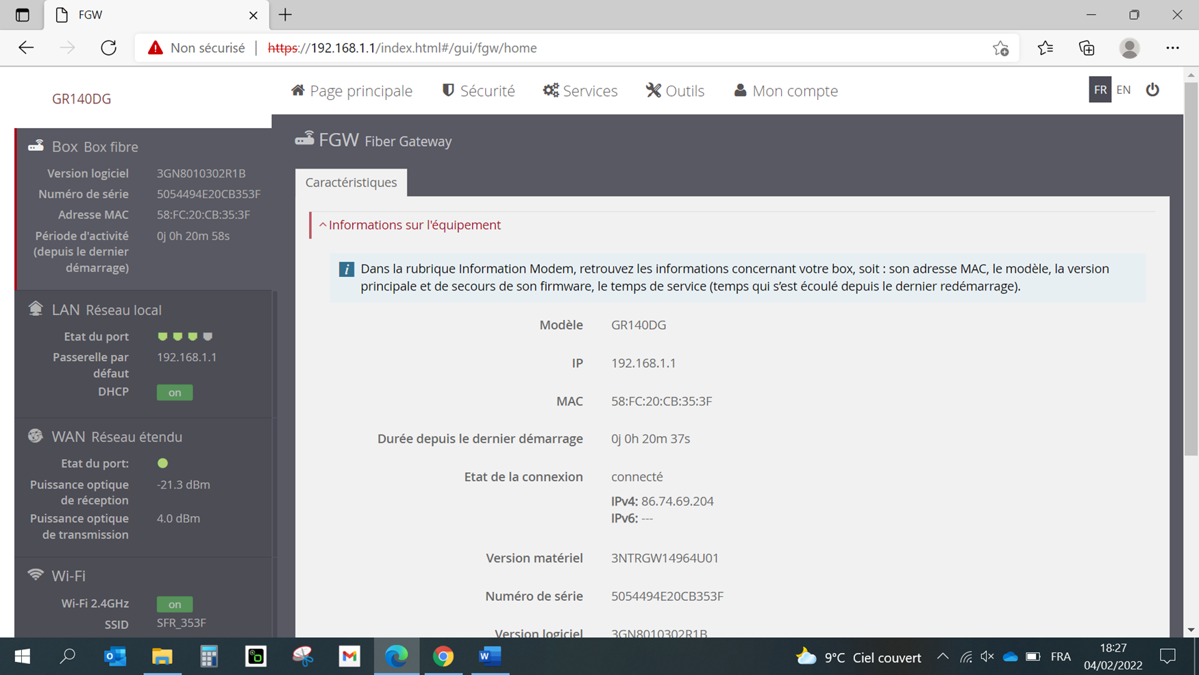 Pour trouver l'adresse privée de votre centrale, il faut passer par l'interface d'admin de la BOX :