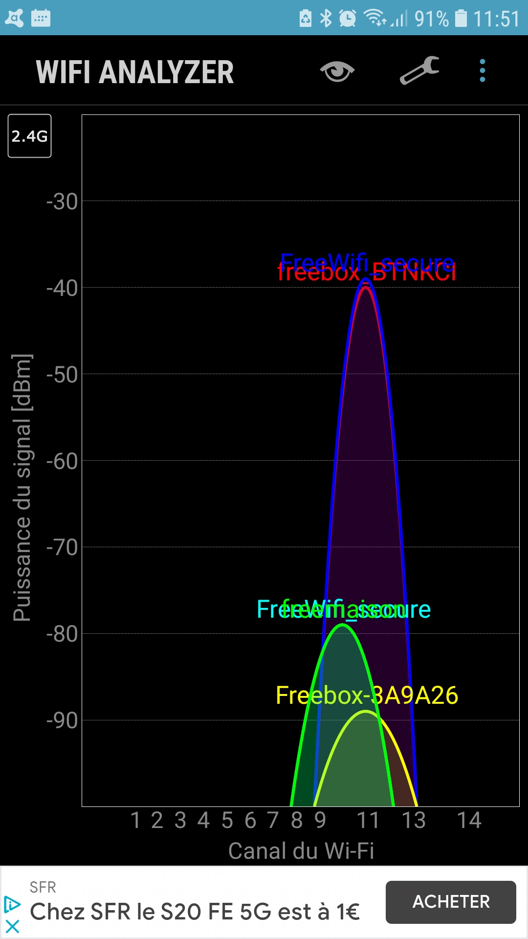 Faite une analyse du réseau Wifi avec l'un des 3 outils suivant et poster le résultat