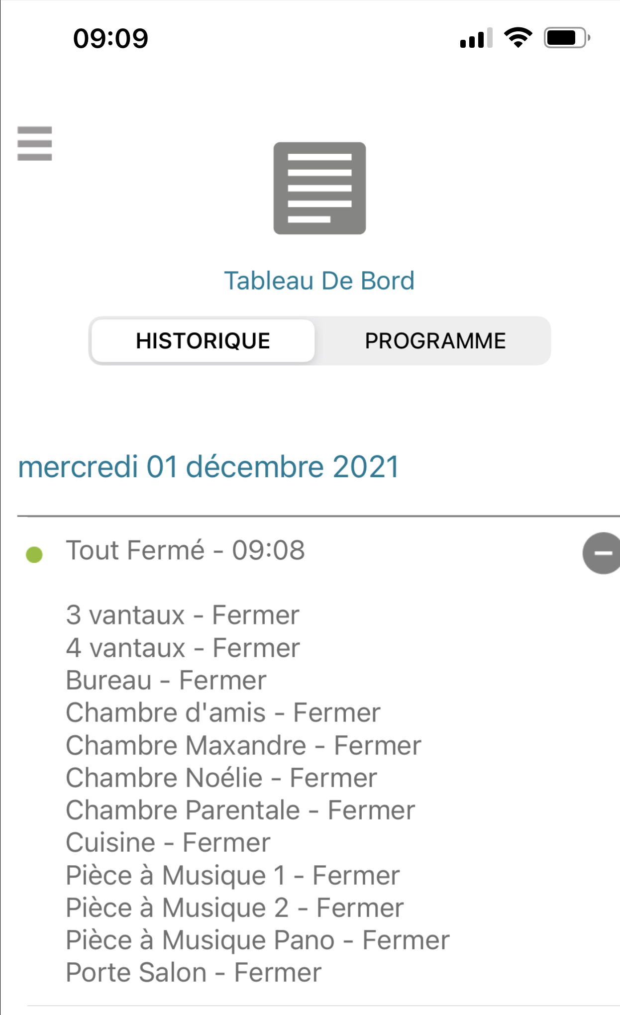 A 17h42 le même scénario mais lancé automatiquement via l’agenda… le volet (chambre d’amis) ne se baisse pas.