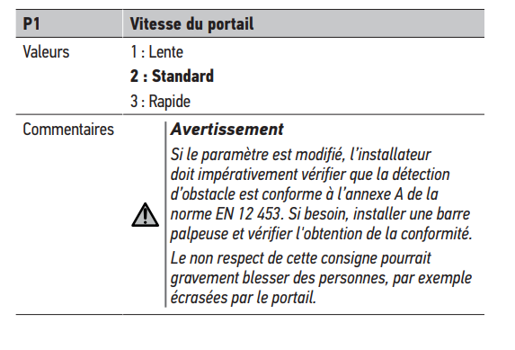 Je souhaite savoir s'il est possible d'accélérer l'ouverture du portail. Il y a une indication sur le manuel mais je ne comprends pas tout.