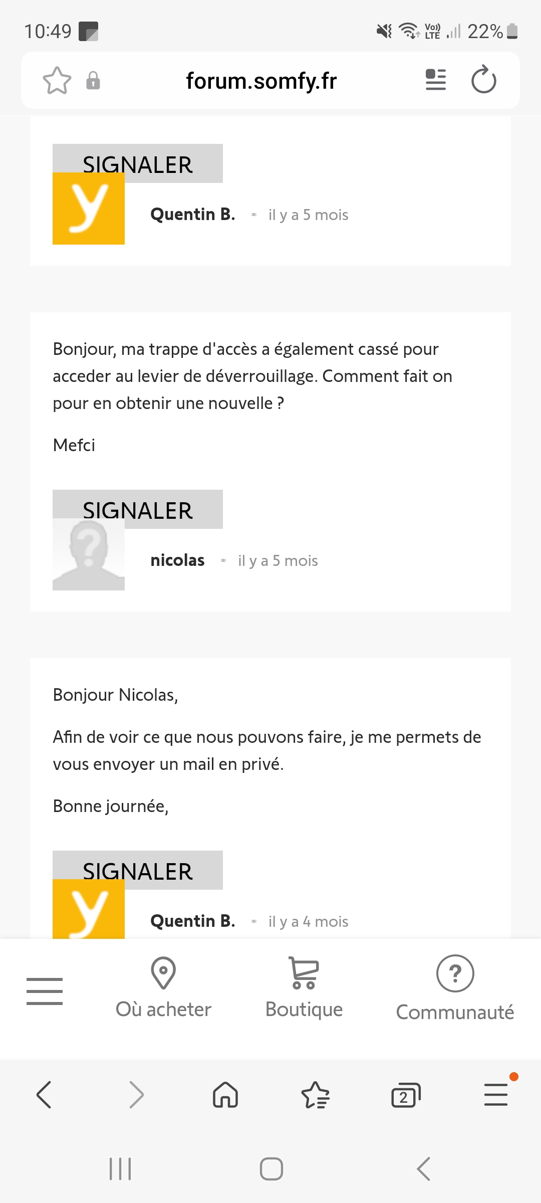 Hier en voulant passer mon portail en mode manuel, ma trappe pour accéder au déverrouillage s'est cassé, je l'ai recollé avec de la glue mais cela reste fragile. Mon moteur est également un sleedymoove600. Dommage que cette pièce soit aussi fragile.