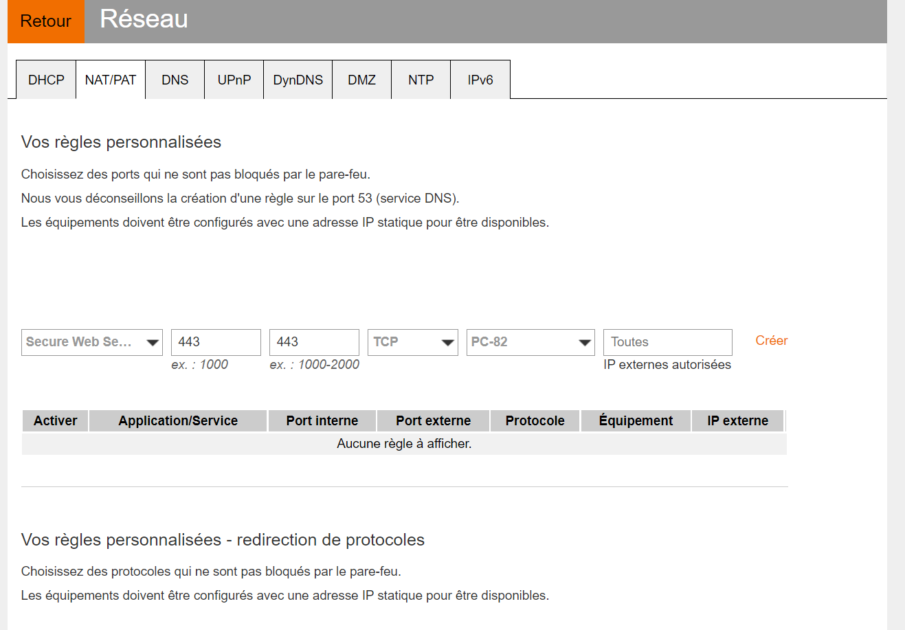 Donc toujours pas moyen de faire l'ouverture de ports.