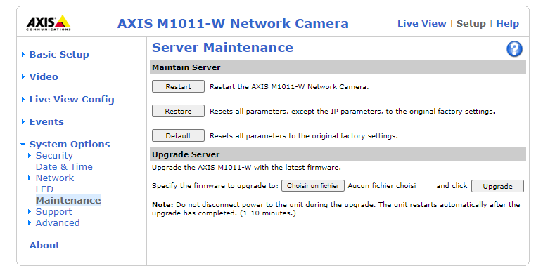 Oui par exemple. Et dans l interface Axis, il y a aussi un endroit où l on peut uploader un firmware.
