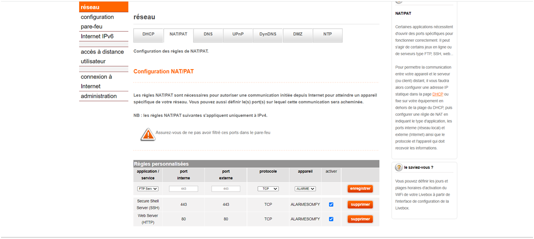 J'ai rebooté la box après suppression des règles; cela n'a rien changé, je vais voir du coté d'orange.