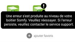 Ce matin, la pergola est ouverte de quelques cm. Lorsque je prends le smartphone, impossible d'activer la fermeture, il y a un point d'exclamation noir qui s'affiche ensuite avec le message "une erreur s'est produite au niveau de votre boitier Somfy...". Je prends la Nina et essaie avec et d'abord elle m'affiche un message qui dit qu'elle reçoit un autre ordre...