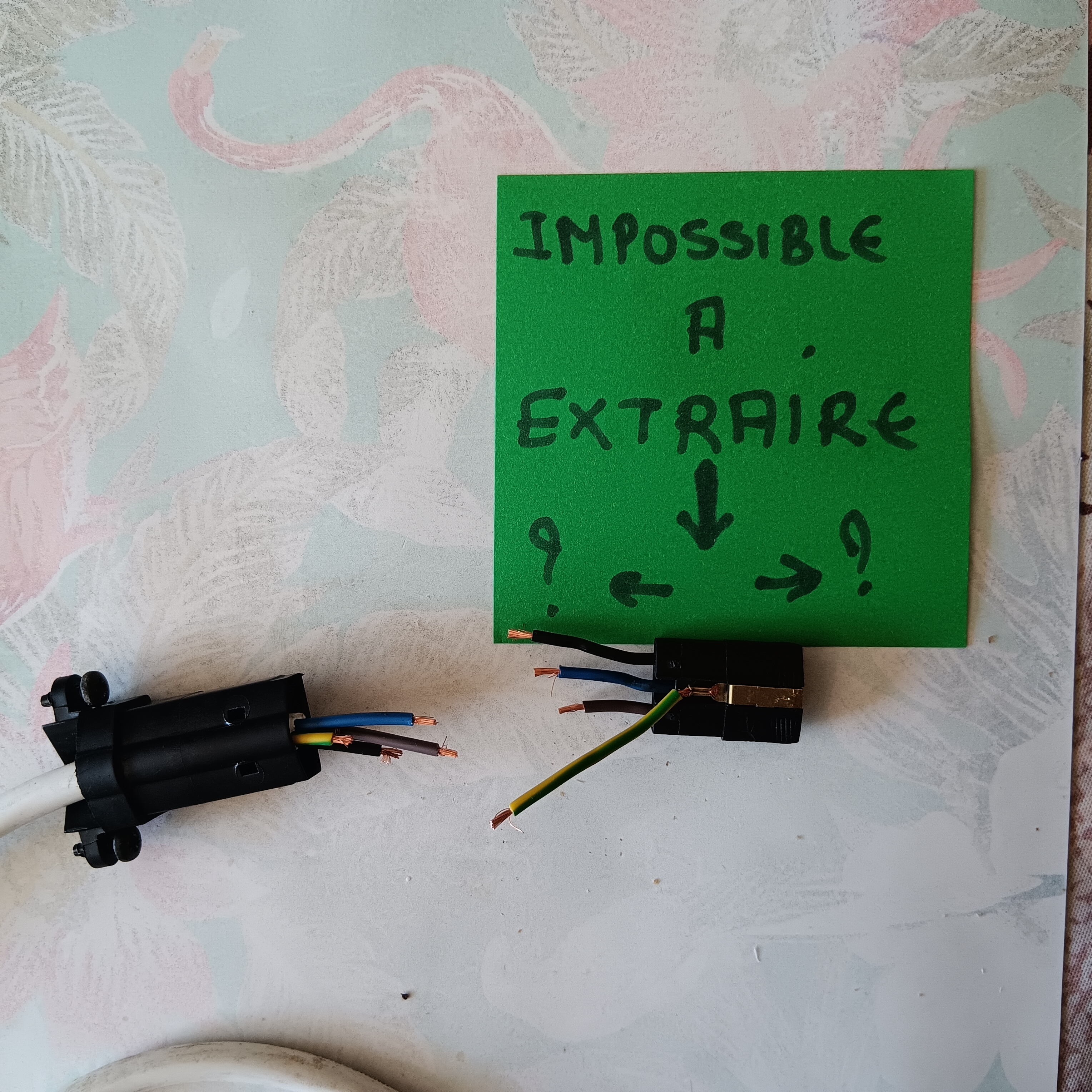 J'ai le même problème que toi. Le câble est coupé trop près de la pièce de raccordement moteur (photo) comment a tu résolu ton problème. Je pense que l'on peut démonter la prise mais pas évident. Merci de tes conseils. Tres cordialement. Christian