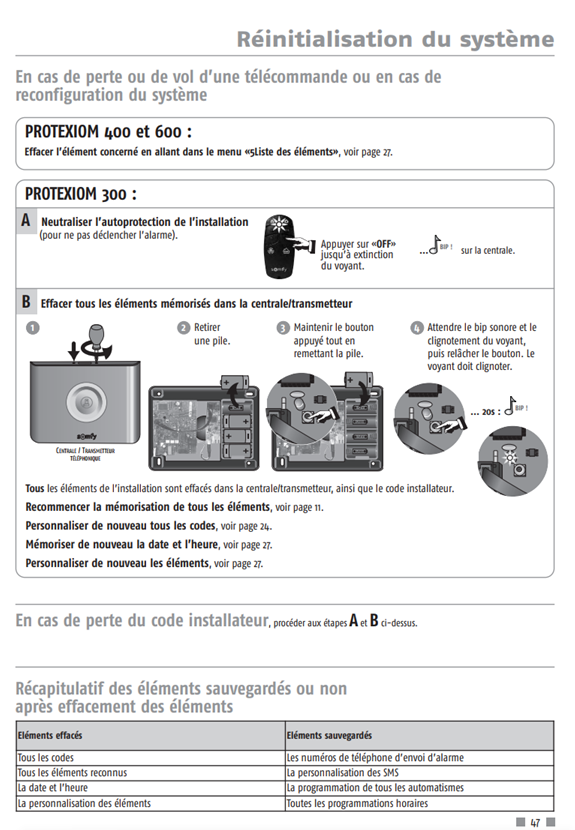 Dans ma réponse, il y a comment réinitialiser une Protexiom.
