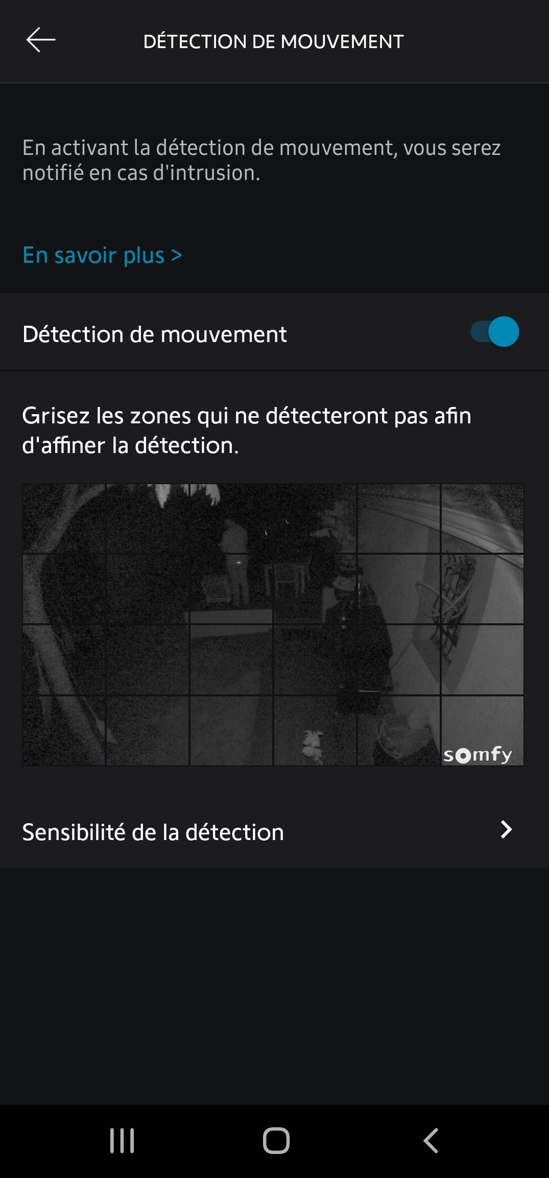 Pouvez-vous me faire une capture écran du réglage "détection de mouvement" sur vos caméras?
