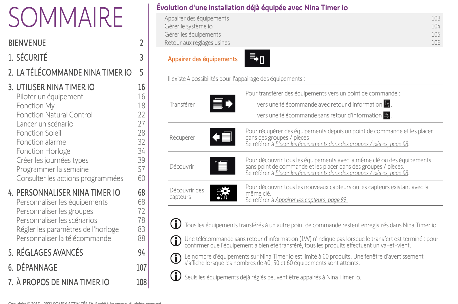 Néanmoins c'est pas clair le menu de la Nina, car l'intitulé du "récupérer..." précise que c'est pour une 2W; or la Smoove est du 1W. Je n'ai pas vu d'explication claire sur un appairage 1 W. Ce petit feedback pour SOMFY, qui pourrait améliorer sa notice.