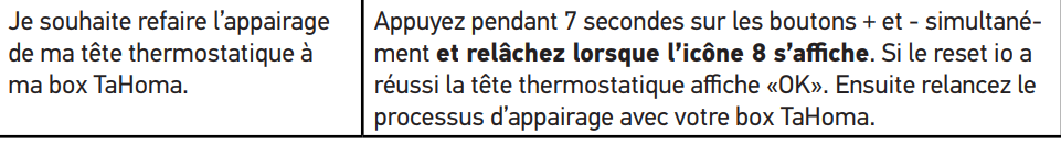 Ce soir, je veux les remettre en marche. Or, je m'aperçois qu'une des vannes a disparu de ma Tahoma qui n'en trouve que 8 sur 9. De plus, j'essaie de l'associer à nouveau mais aucune nouvelle vanne n'est trouvée malgré mon appui sur + et - simultanément pour passer en mode association. J'ai essayé en retirant et en remettant les piles, pas mieux. Les autres vannes sont repassées en mode programme normalement.