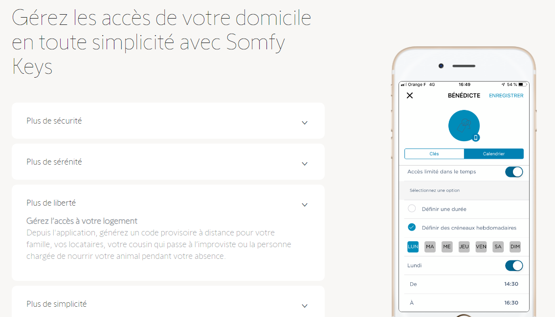 pour compléter la réponse de Jacky, les accès se gère que via l'app Somfy Key et pas par TaHoma.