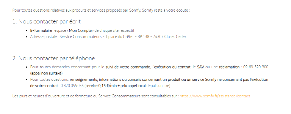Alors plus qu'a attendre qu'un Yello passe par là, sinon je vous met en copie d'écran les différents moyens de contacter Somfy