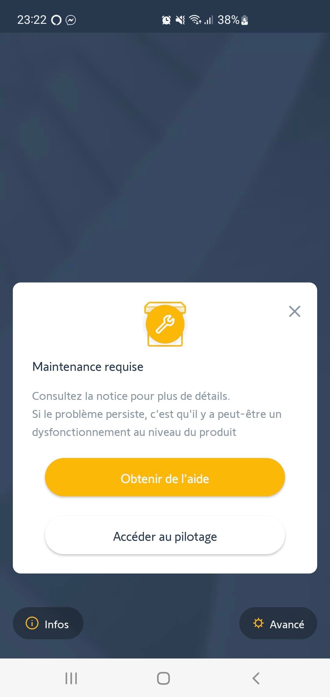 Je me suis dis que je devais régler la fin de course pour corriger ; hors maintenant, lorsque j'essaie de changer le pourcentage d'ouverture, j'ai un message disant "maintenance requise consultez la notice pour plus de détails".