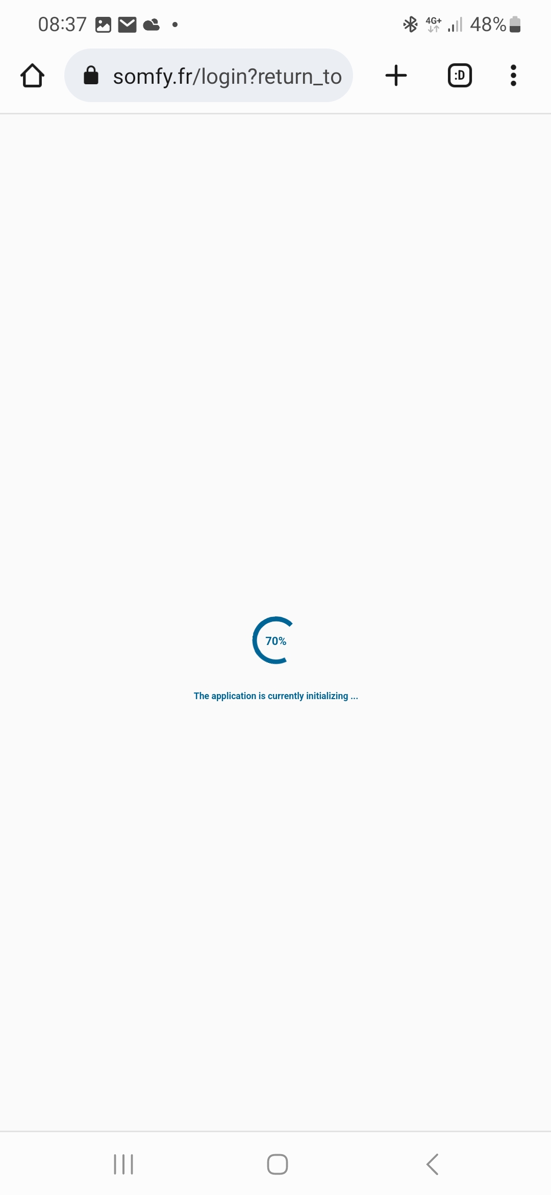 En essayant de me connecter sur mon compte boutique somfy la page tourne en boucle avec le message. The application is currently initializing