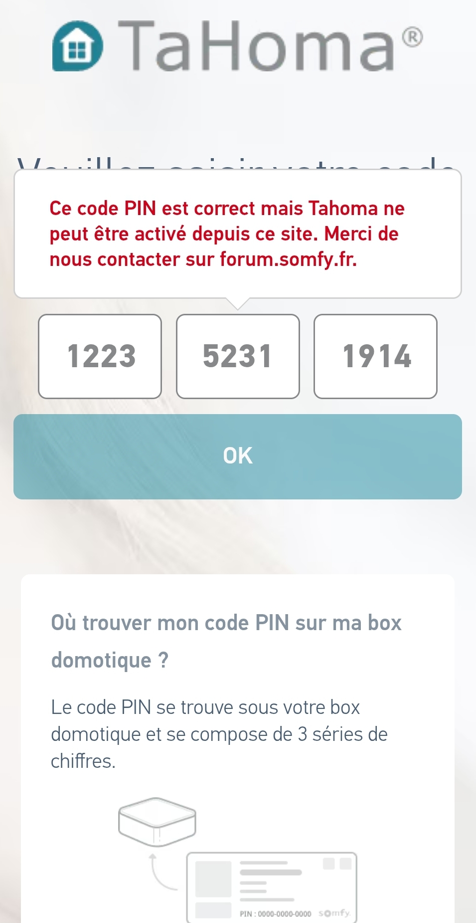 Bonjour, je viens de vous faire reinitialiser ma Tahoma V2. Merci. Mais lorsque je tente de la reappairer voila le message que j'obtiens. Pouvez vous m'aider svp ?
