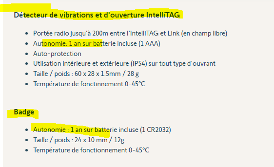 Par contre les badges oui je les change tous les 8-10 moi en moyenne qaund il me le signale et le chnagement ce passe bien. Il n'y a bien qu'avec ces intellTag que le changement de pile conduit à leur perte si on ne les change pas avant que le système ne le signale....je comprends pas pourquoi ?