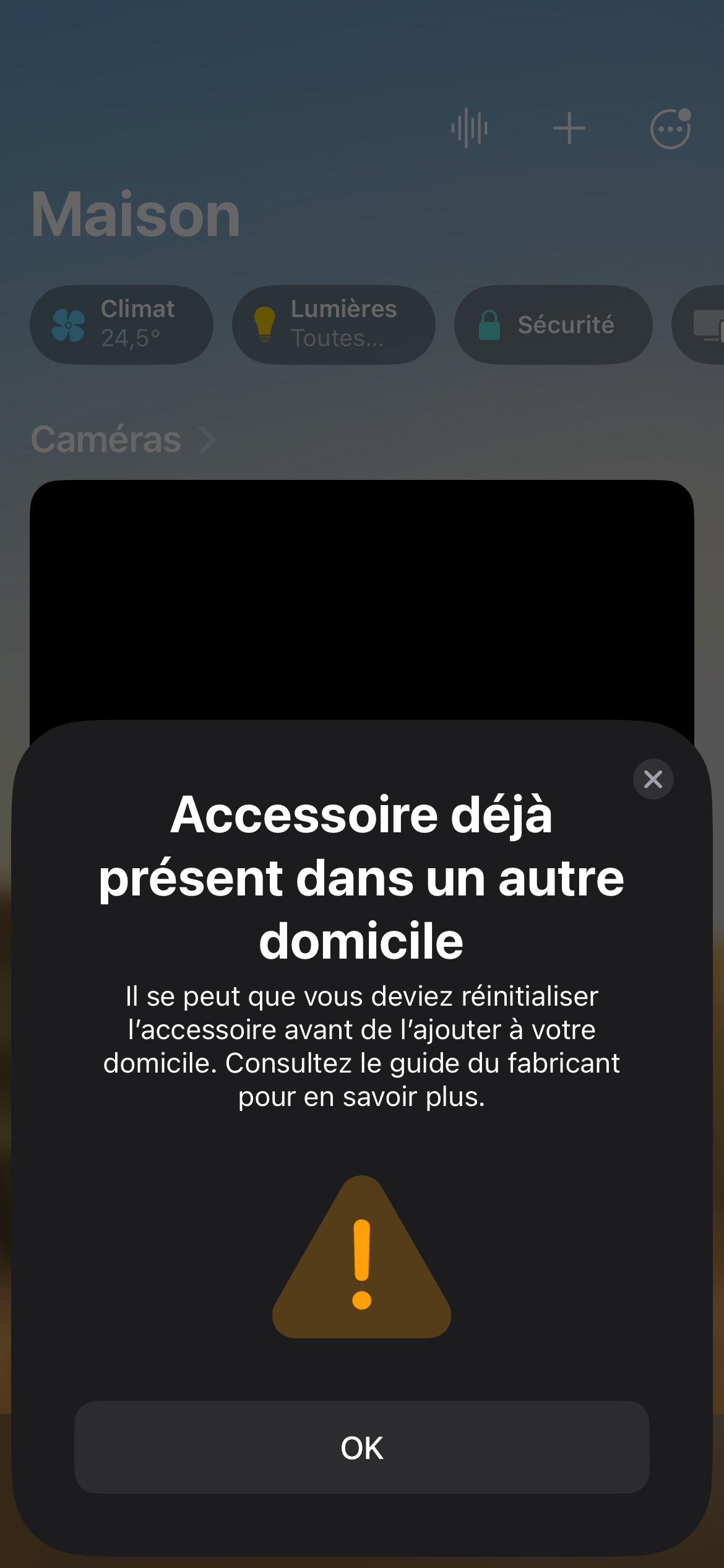 J’ai donc supprimé le pont sur l’application Maison (HomeKit ), et depuis impossible de réinstaller le pont sur l’application maison, j’ai le message suivant (voir photo jointe).