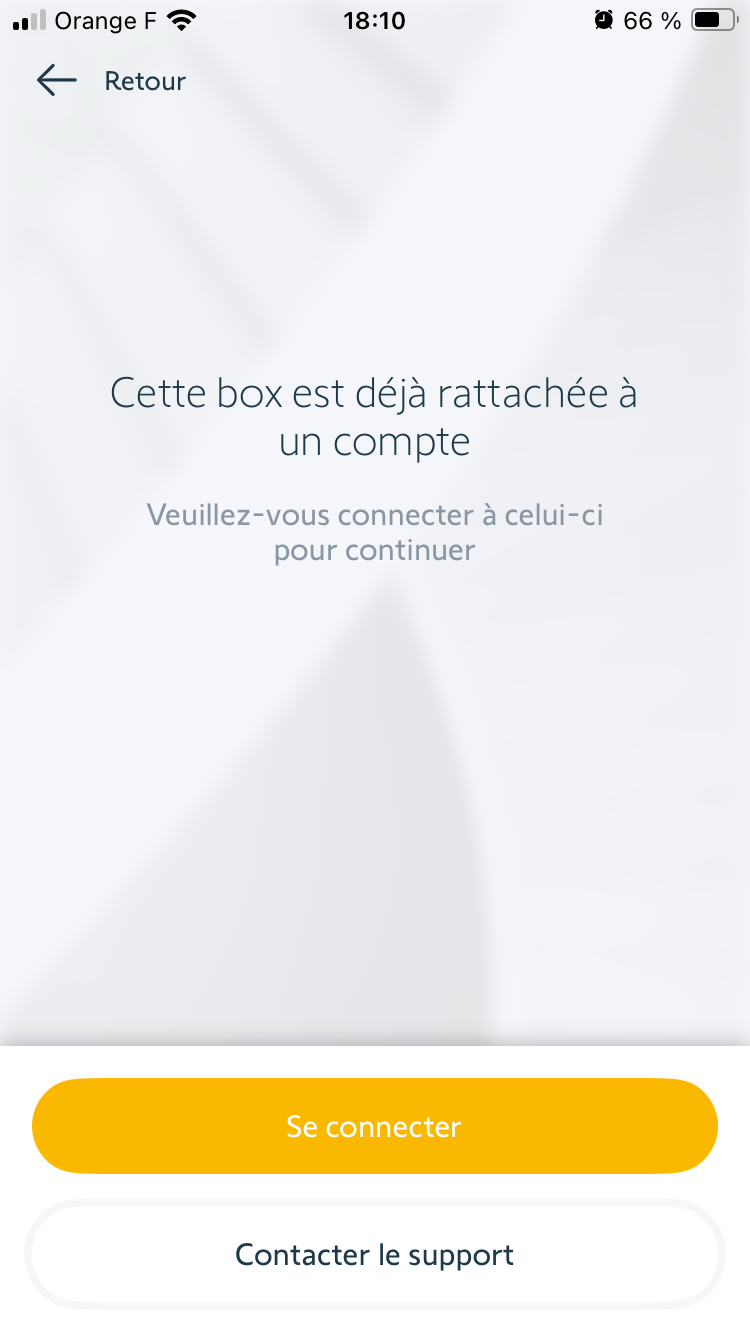 J'ai fait l'acquisition d'une maison équipée d'une box Somfy. L'ancien propriétaire ne réponds pas à ma demande de dissociation de son compte avec la box. Je me retrouve donc confronter au problème que cette dernière est déjà rattachée à un autre compte lorsque j'essaie de me connecter.
