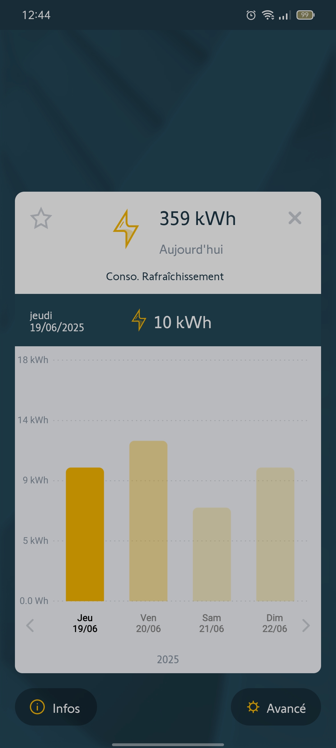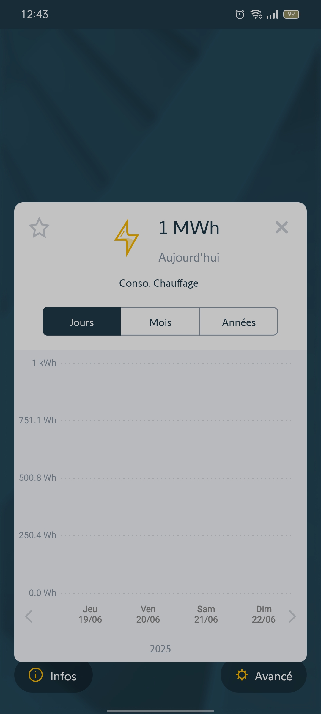 Pouvez-vous m'envoyer une capture d'écran de votre consommation chauffage sur l'application Tahoma où vous m'avez dis avoir 0 avec le rafraîchissement en fonction avec les dates du 21 et 22 Juin?