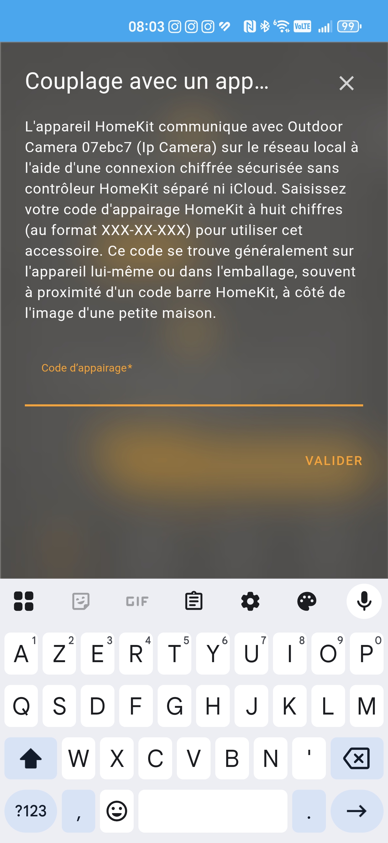 Pour connecter les caméras à Homekit, vous trouverez le code dans l'application SomfyProtect => réglage => Homekit.