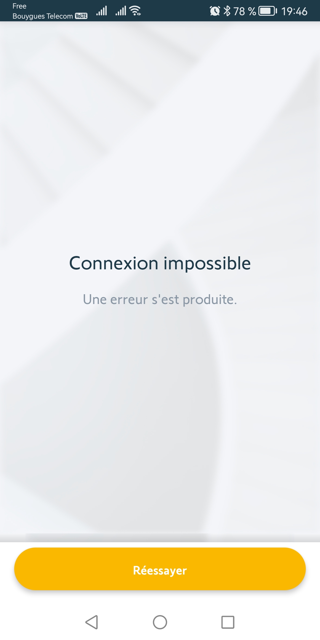 Ça marque connexion impossible, une erreurs s'est produite, veuillez réessayer.