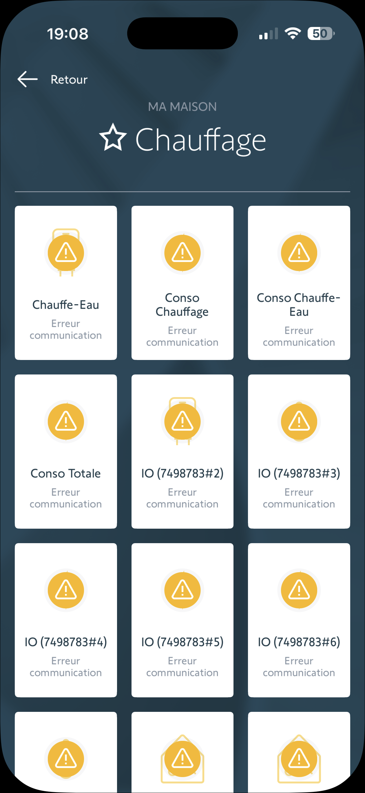L'application thaoma indique tout un tas d'appareils en erreur de commmunication.