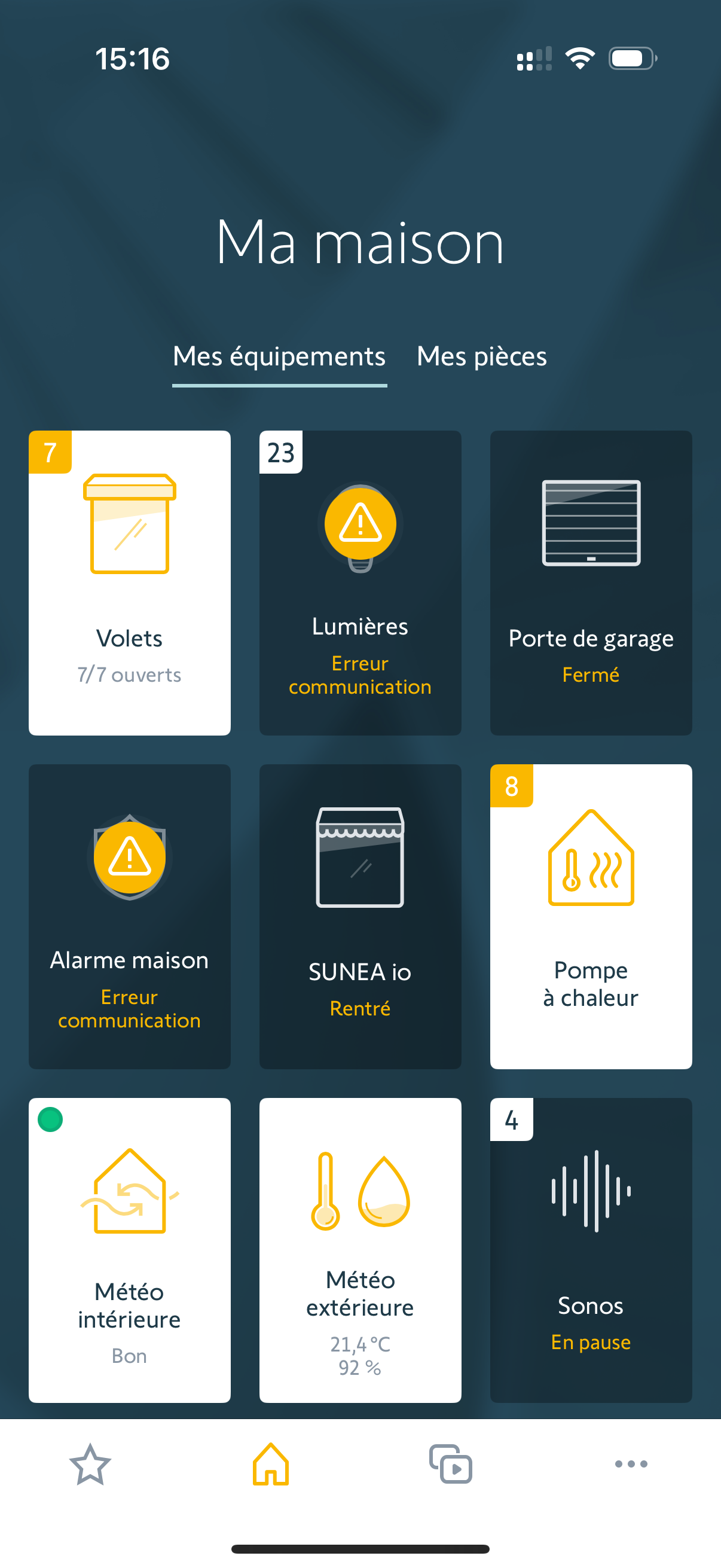 Pouvez-vous me renvoyer une capture de l'application, dans mes équipements, et alarme?