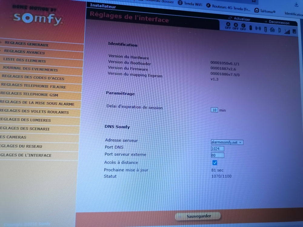 Bonsoir,merci pour la tahoma S. Pour en revenir sur le serveur somfy, j'ai changer la central défectueuse et configurer la nouvelle central IO cela devrais fonctionner. merci