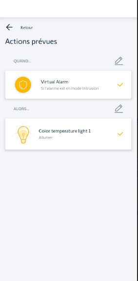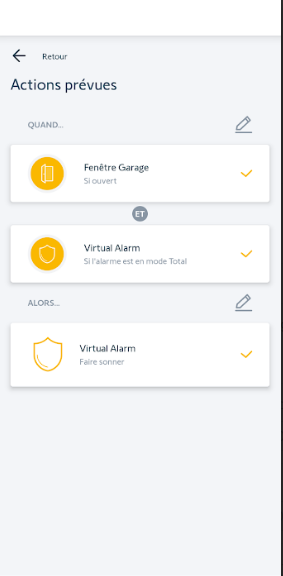 Retour à l'appli mobile pour le paramétrage du switch virtuel pour le transformer en déclencheur virtuel.