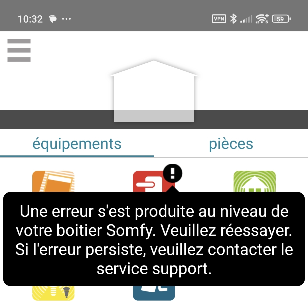 J'ai le message d'erreur : "Une erreur est survenue" / "Erreur de pilotage, une erreur est survenue lors du pilotage d'un ou de plusieurs de vos équipements".