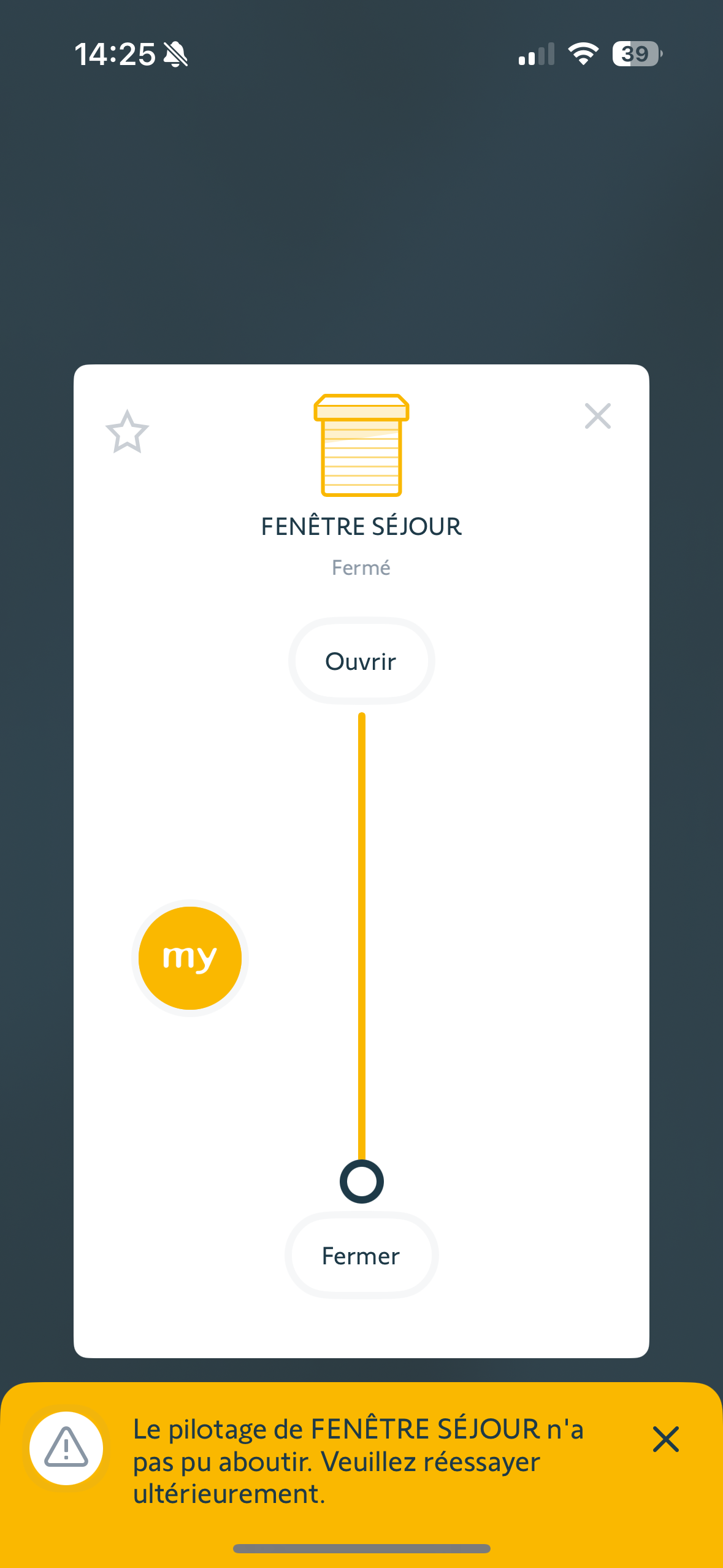 J’ai également un problème avec le volet de la salle de sport qui ne répond plus.