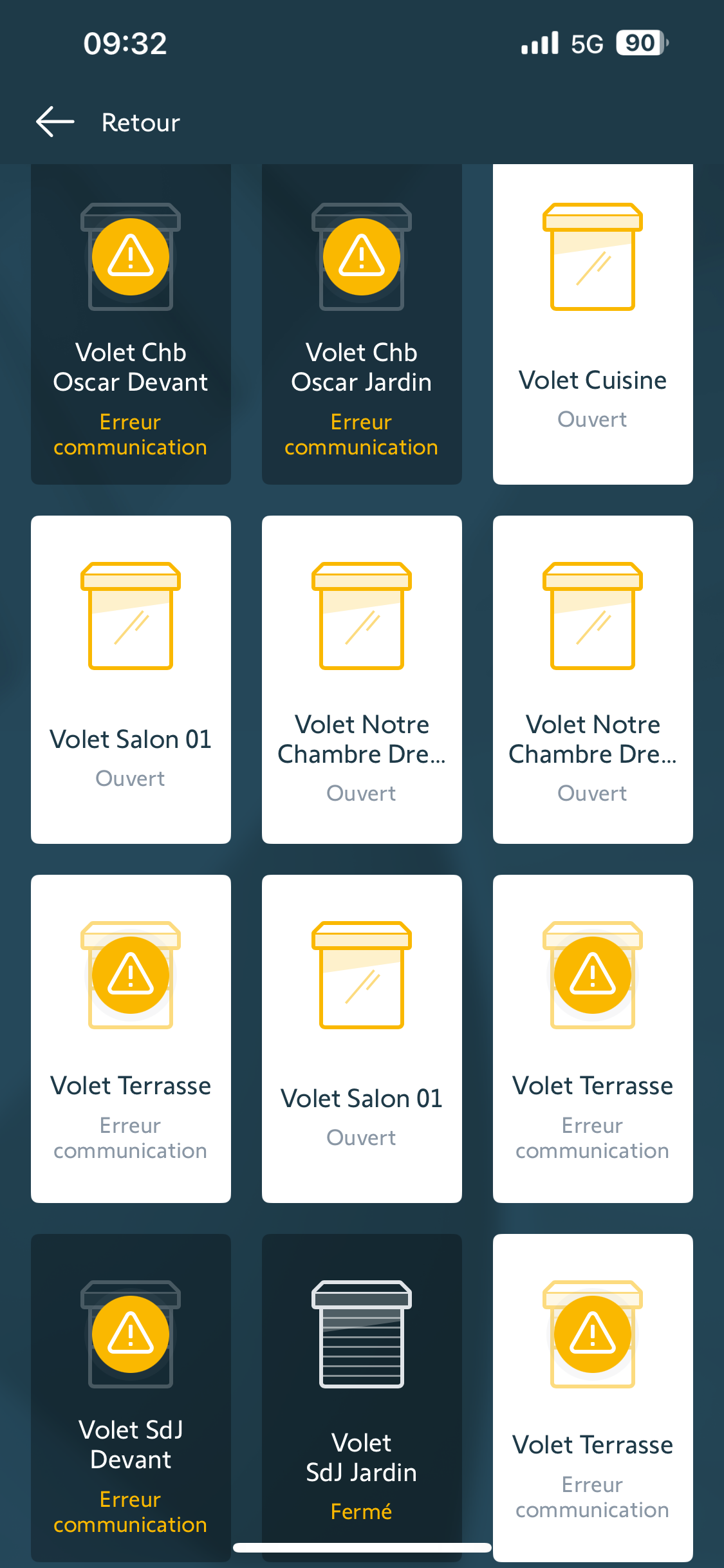 Du jour au lendemain un volet est en erreur de communication sur l’application alors que je parviens à le piloter.
