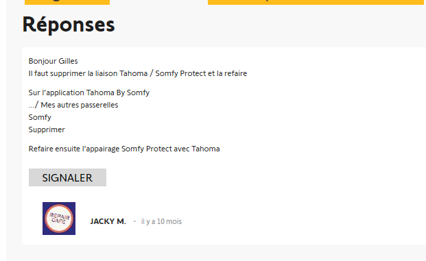 Il faut supprimer la liaison Tahoma / Somfy Protect et la refaire