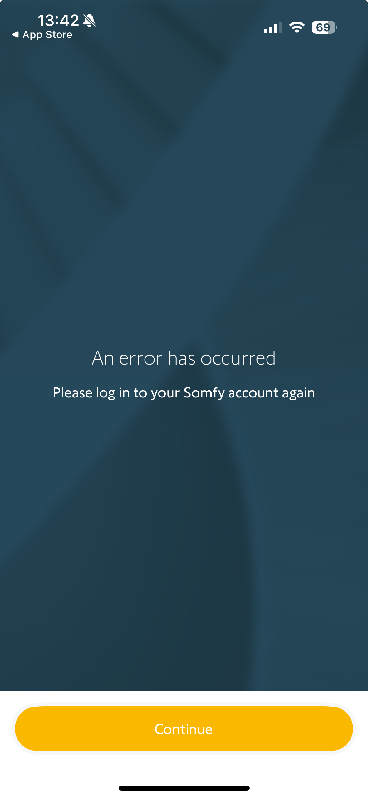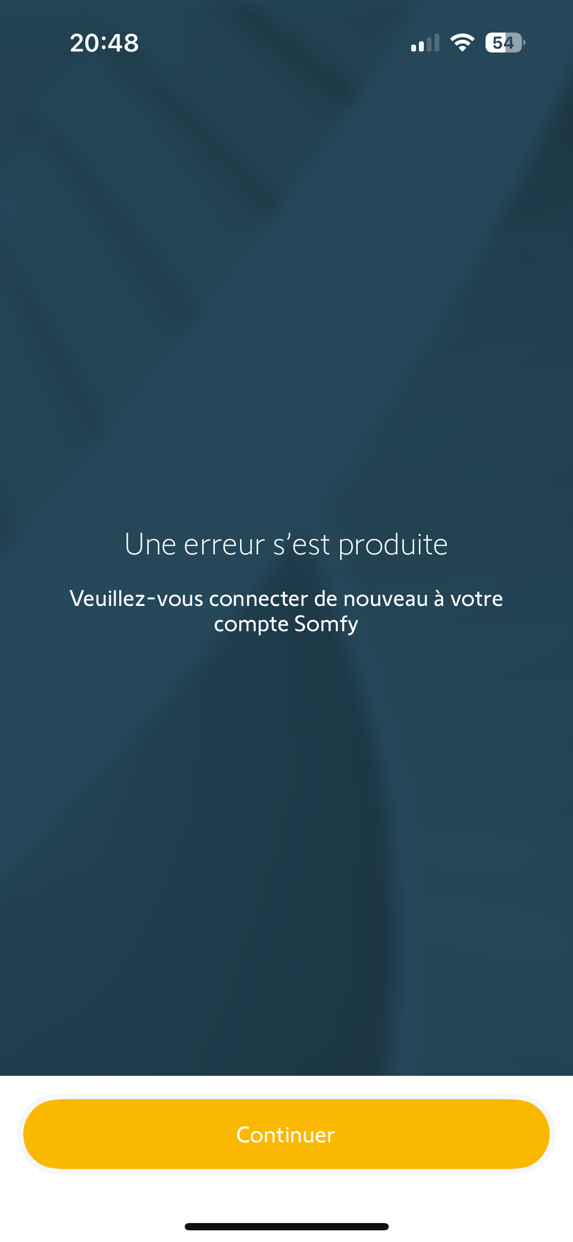"Erreur de connexion, veuillez vérifier les identifiants de connexion de votre compte somfy"
