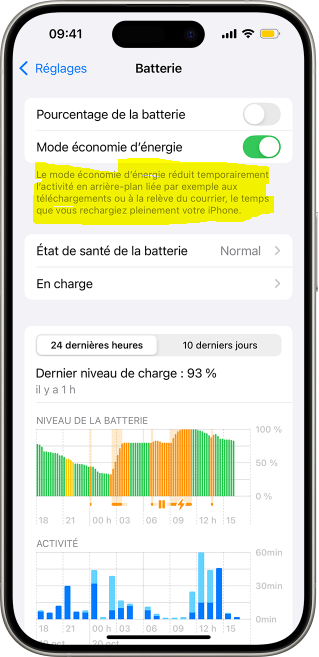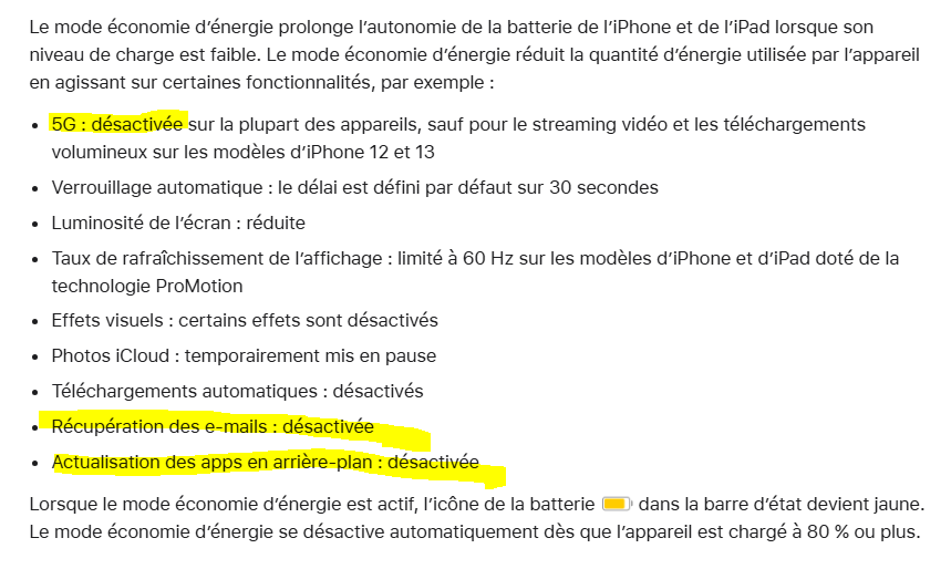 Sur Iphone le mode économie d'énergie ralenti la récupération des messages