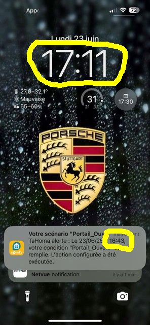 Depuis plusieurs semaines, j'ai aussi un décalage énorme entre l'ouverture d'une porte scénarisée et la réception de la notification.