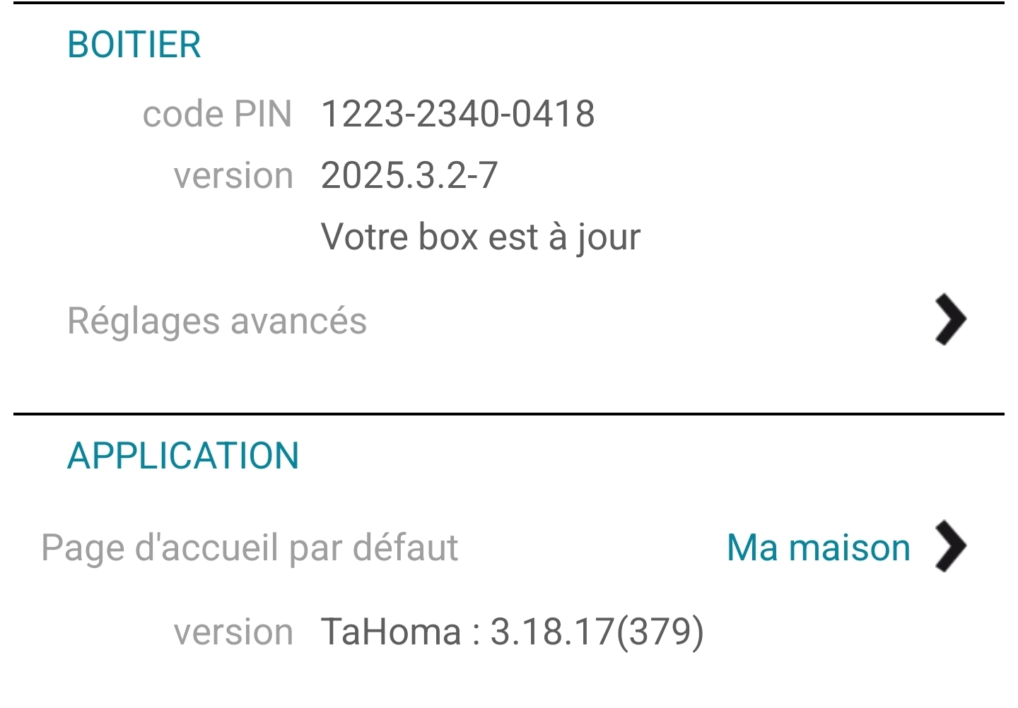 Comme indiqué sur un autre post c’est la version iOS de l’application TaHoma qui fait défaut, en passant par Android je code pin est bien reconnu.