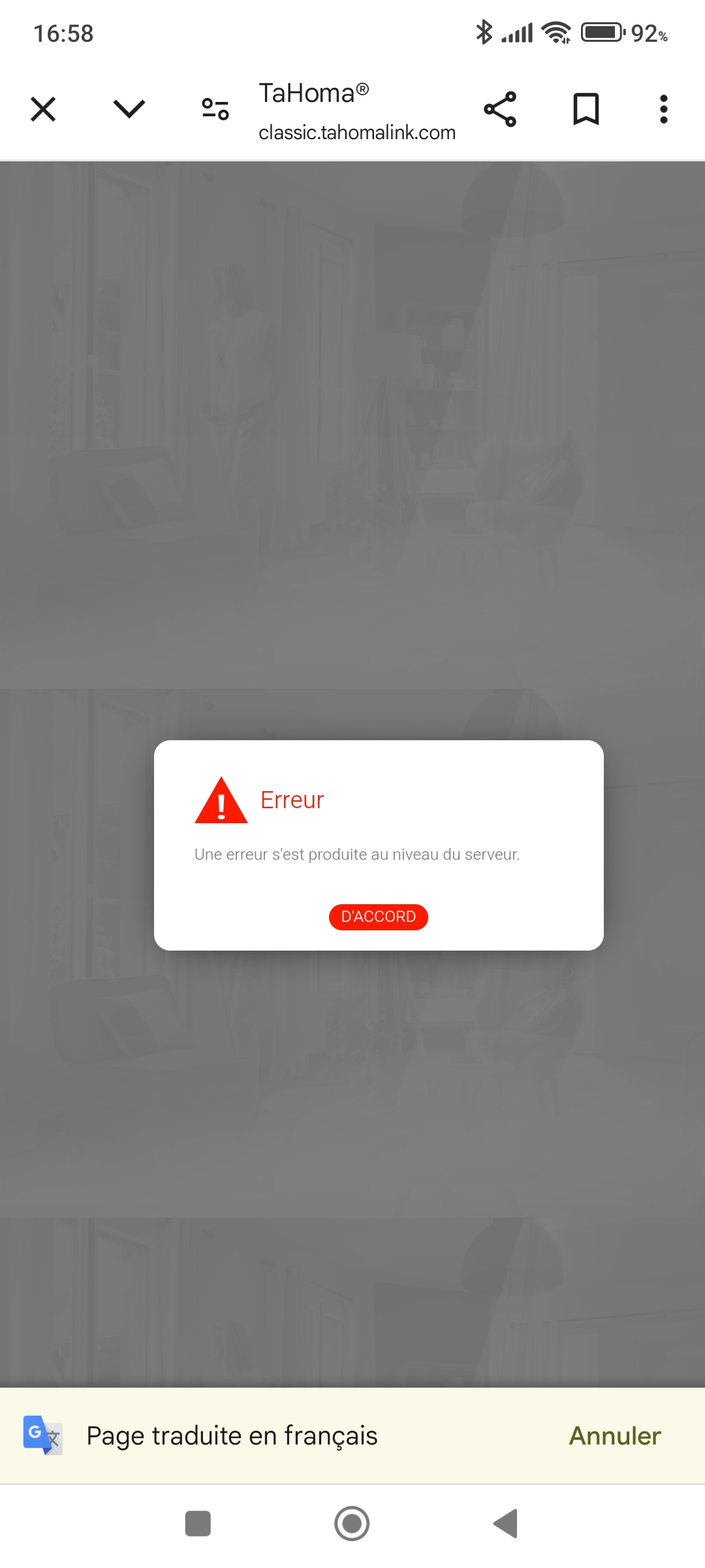 Lorsque je demande via l’assitant Google home de fermer ou ouvrir des volets la réponse est: somfy tahoma indisponible en ce moment