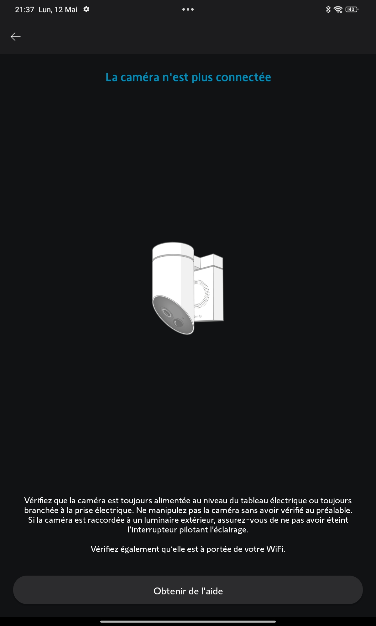 J’ai ma caméra somfy outdoor acheté en juin 2024 et elle ne fonctionne plus.