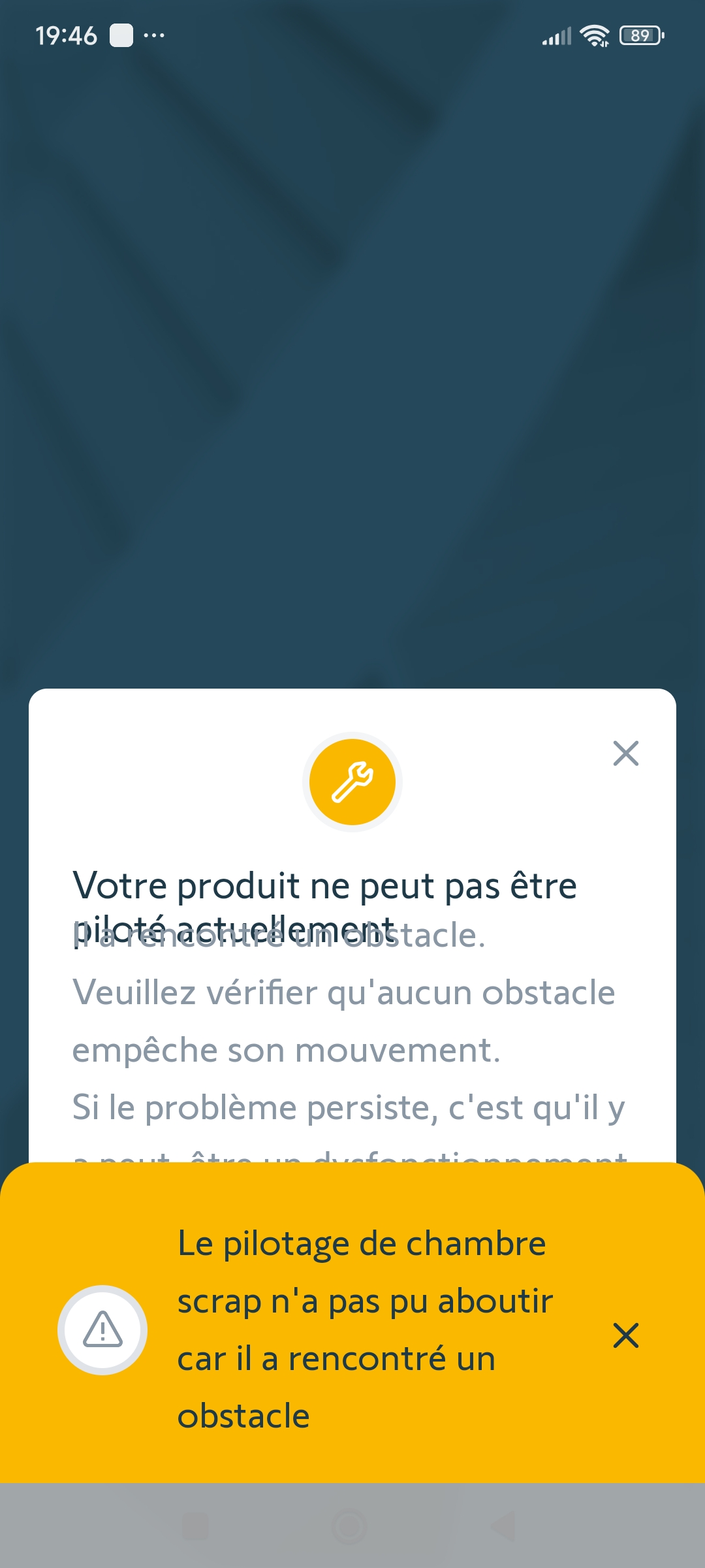 Dorénavant lorsque je commande la fermeture de ces volets, j'ai ce message d'erreur sur l'application Tahoma : le pilotage de la chambre n'a pu aboutir car