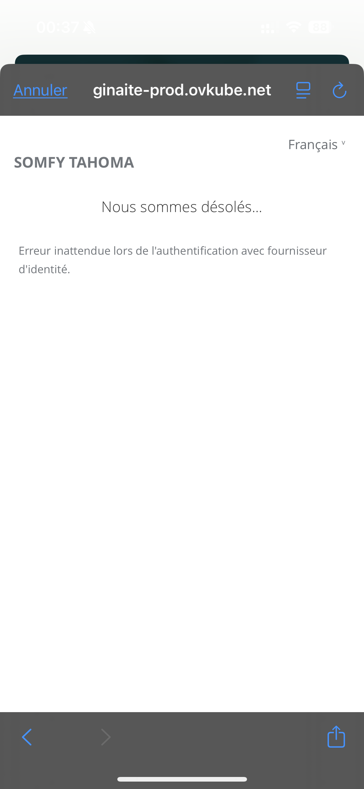 Après une déconnexion impossible de se reconnecter sur mon espace TaHoma by somfy. Mdp changé, box réinitialisée, rien n’y fait ! Box tahoma 1223-8776-9413, smart phone sous iOS. Pouvez vous regarder de votre côté pourquoi il mets impossible de me connecter à nouveau.